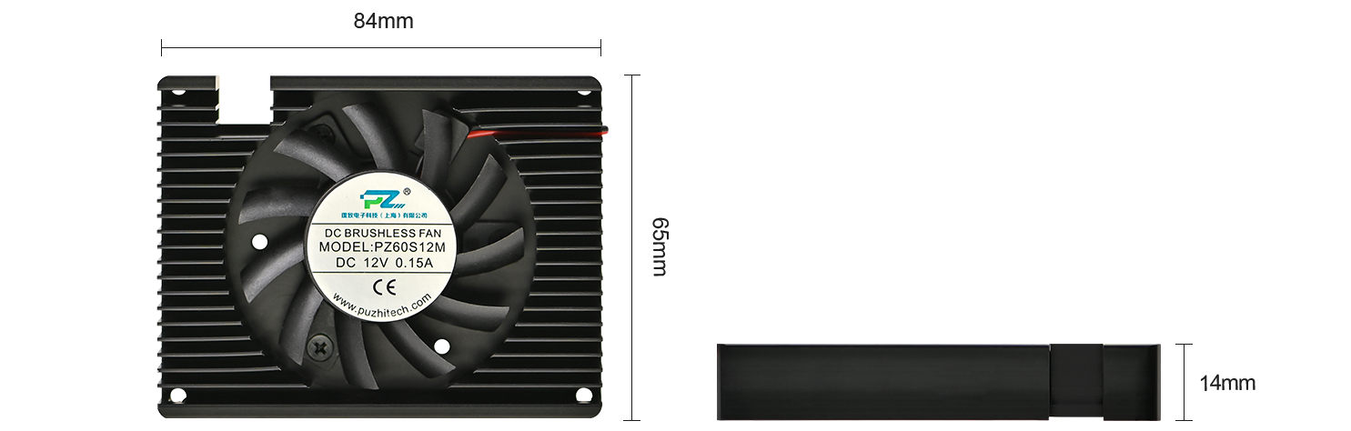PZ-H846514 is an Industrial grade 12V Heatsink/Cooling FAN designed for PUZHI FPGA SOMs. Dimensions: 84mm x 65mm. 12V 2-pin Power connector.